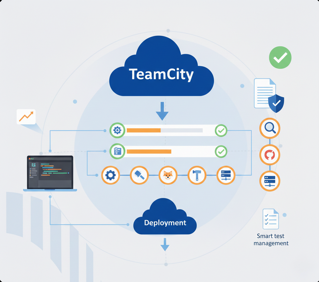 Implement TeamCity pipelines with Qodana quality gates, parallel execution, and optimized build agents.